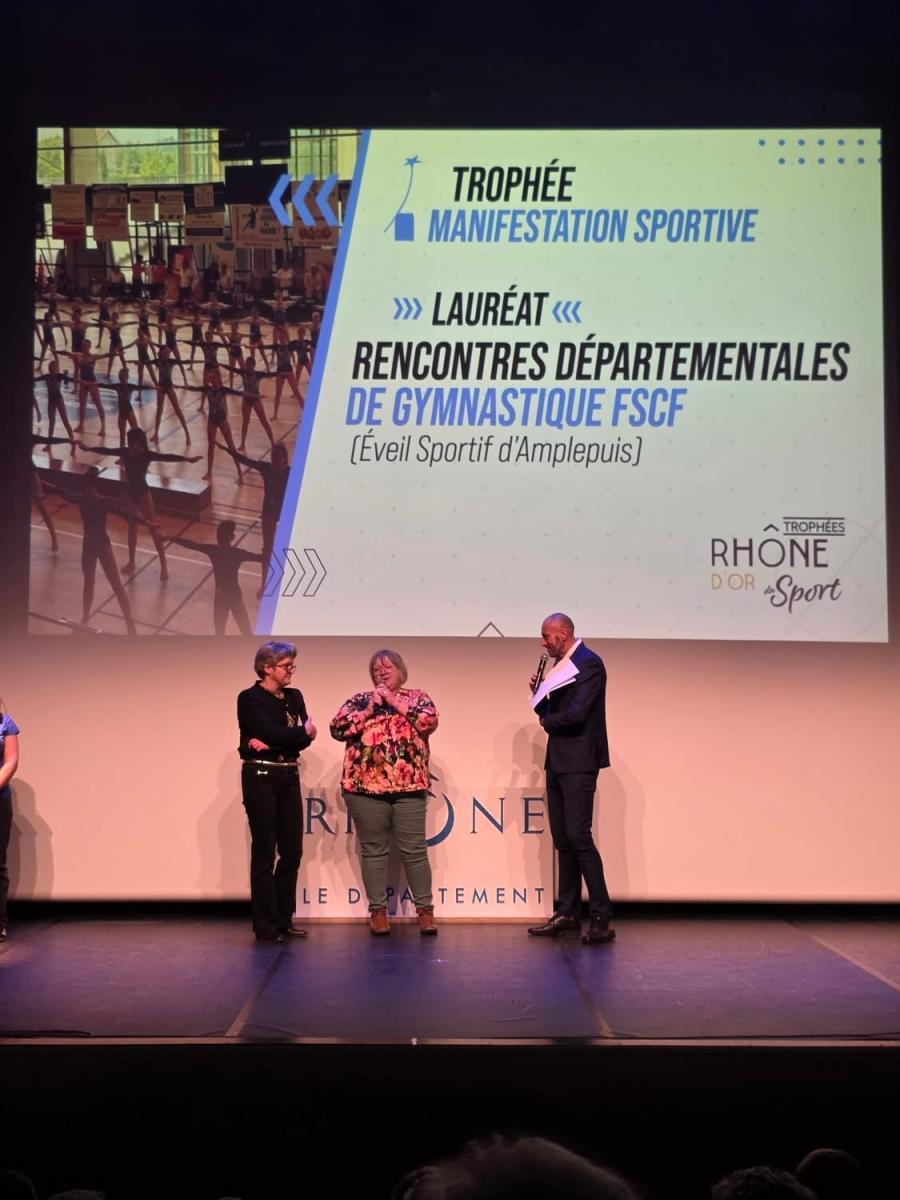 L'Eveil sportif d'Amplepuis, également nominé par sa municipalité dans le cadre de l'organisation du Championnat départemental de Gymnastique Féminine remporte le Rhône d'Or dans la catégorie Manifestation de l’année. Toutes nos félicitations à Chantal Chamarande, présidente de l'association, et son équipe pour ce prix amplement mérité.
